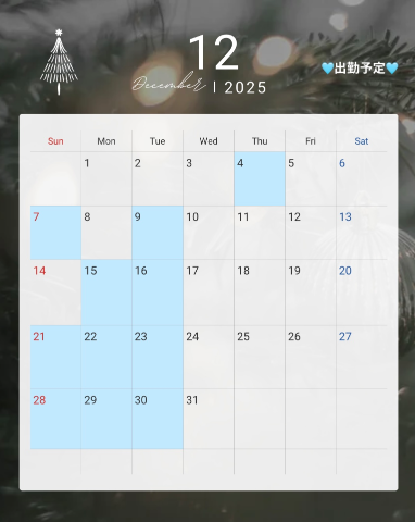 12月の出勤予定🗓
